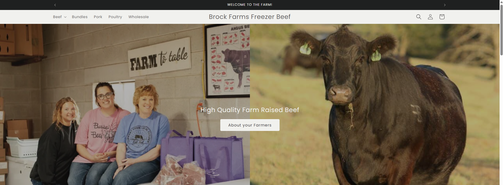 Brock Farms Freezer Beef has a website containing all of our current inventory available with a few clicks and online checkout! You can put together your ideal bundle online to reserve your favorites, and then stop by to pick them up from us at the farm!